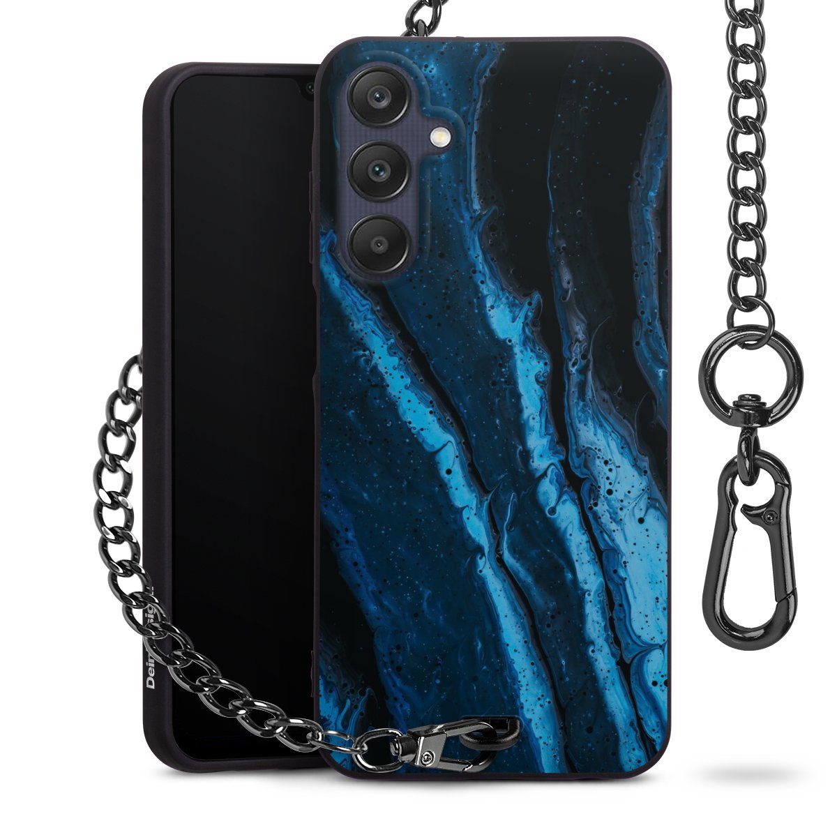 - Mattschwarze Handyhülle mit Metallkette