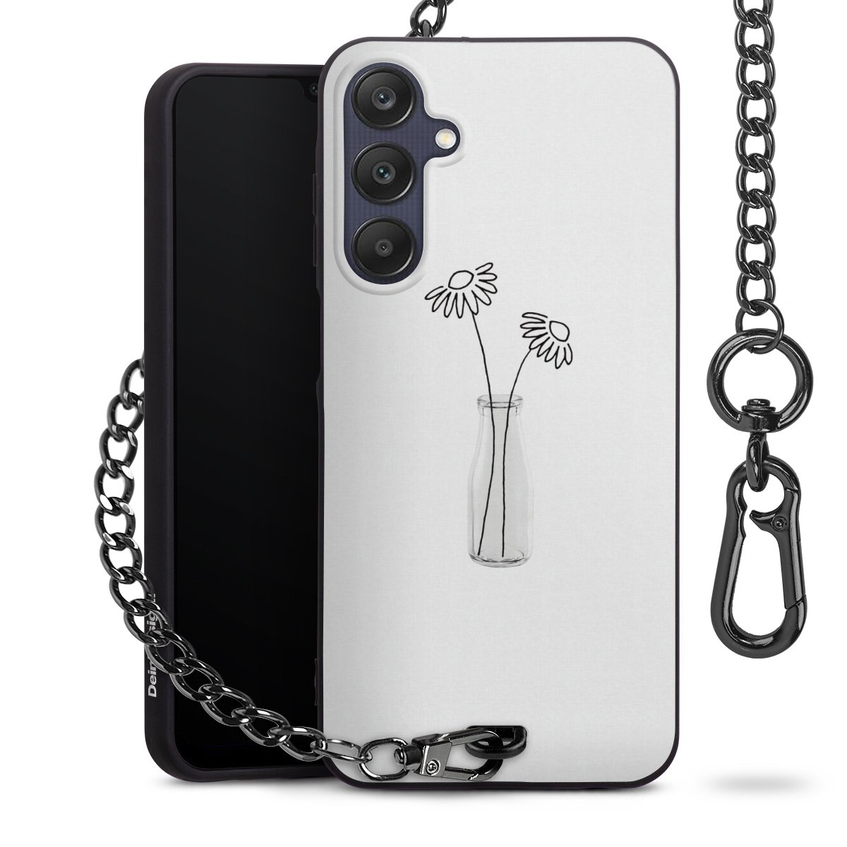 • Mattschwarze Handyhülle mit Metallkette