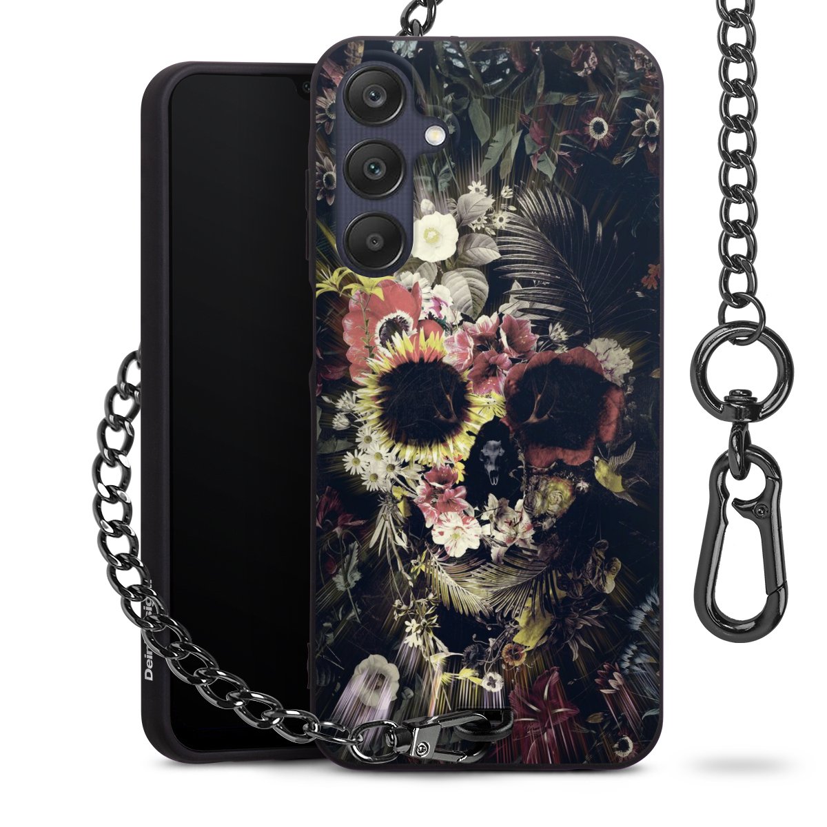 Die mattschwarze Silikon-Handyhülle besteht aus robustem TPU (thermoplastisches Polyurethan). Sie ist flexibel und schützt Dein Smartphone vor Stößen und Kratzern. Die Kette sowie der Karabinerhaken sind aus Metall in Gunmetal-Optik gefertigt. Für dieses Produkt kommen ausschließlich TÜV-geprüfte Materialien zum Einsatz.