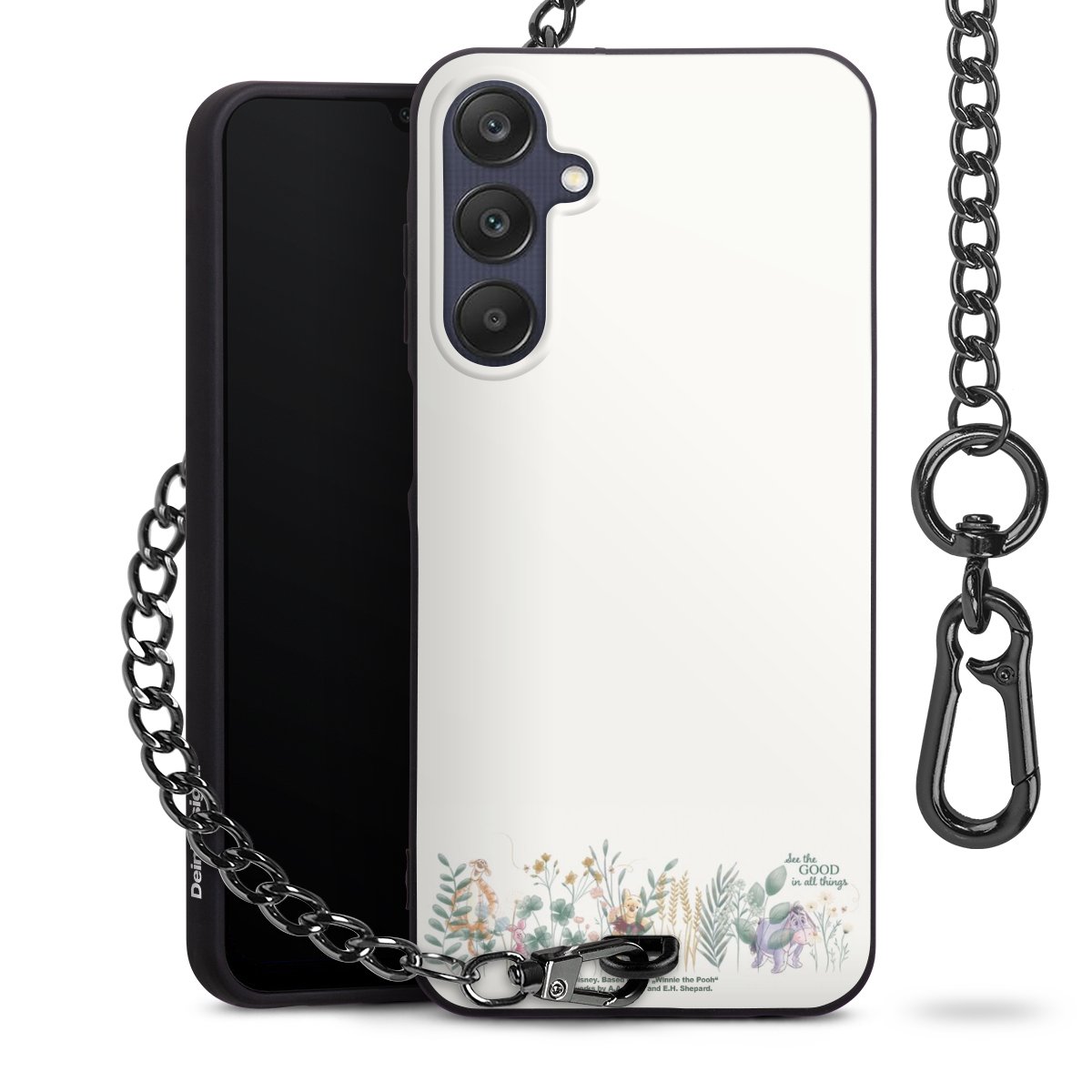 Die mattschwarze Silikon-Handyhülle besteht aus robustem TPU (thermoplastisches Polyurethan). Sie ist flexibel und schützt Dein Smartphone vor Stößen und Kratzern. Die Kette sowie der Karabinerhaken sind aus Metall in Gunmetal-Optik gefertigt. Für dieses Produkt kommen ausschließlich TÜV-geprüfte Materialien zum Einsatz.