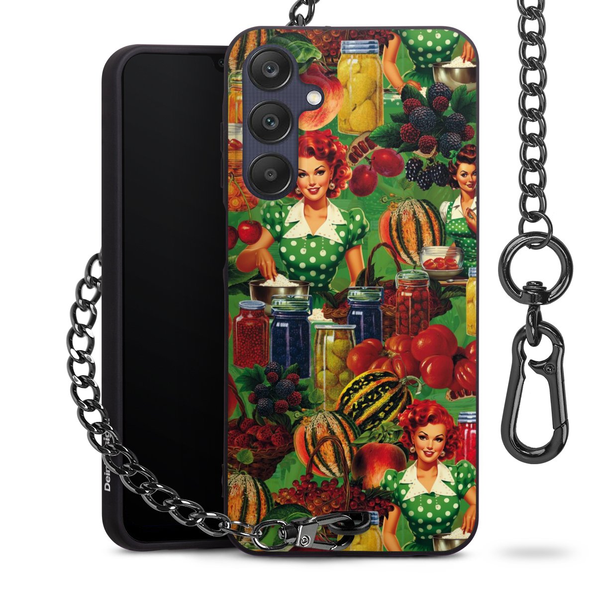 Die mattschwarze Silikon-Handyhülle besteht aus robustem TPU (thermoplastisches Polyurethan). Sie ist flexibel und schützt Dein Smartphone vor Stößen und Kratzern. Die Kette sowie der Karabinerhaken sind aus Metall in Gunmetal-Optik gefertigt. Für dieses Produkt kommen ausschließlich TÜV-geprüfte Materialien zum Einsatz.