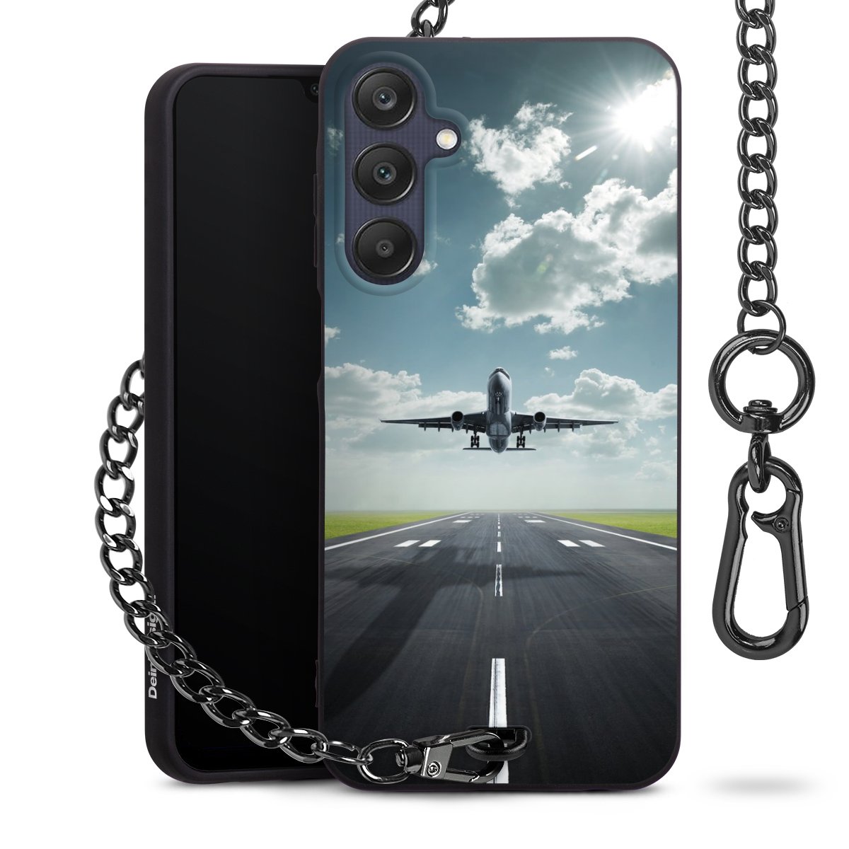 - Mattschwarze Handyhülle mit Metallkette
