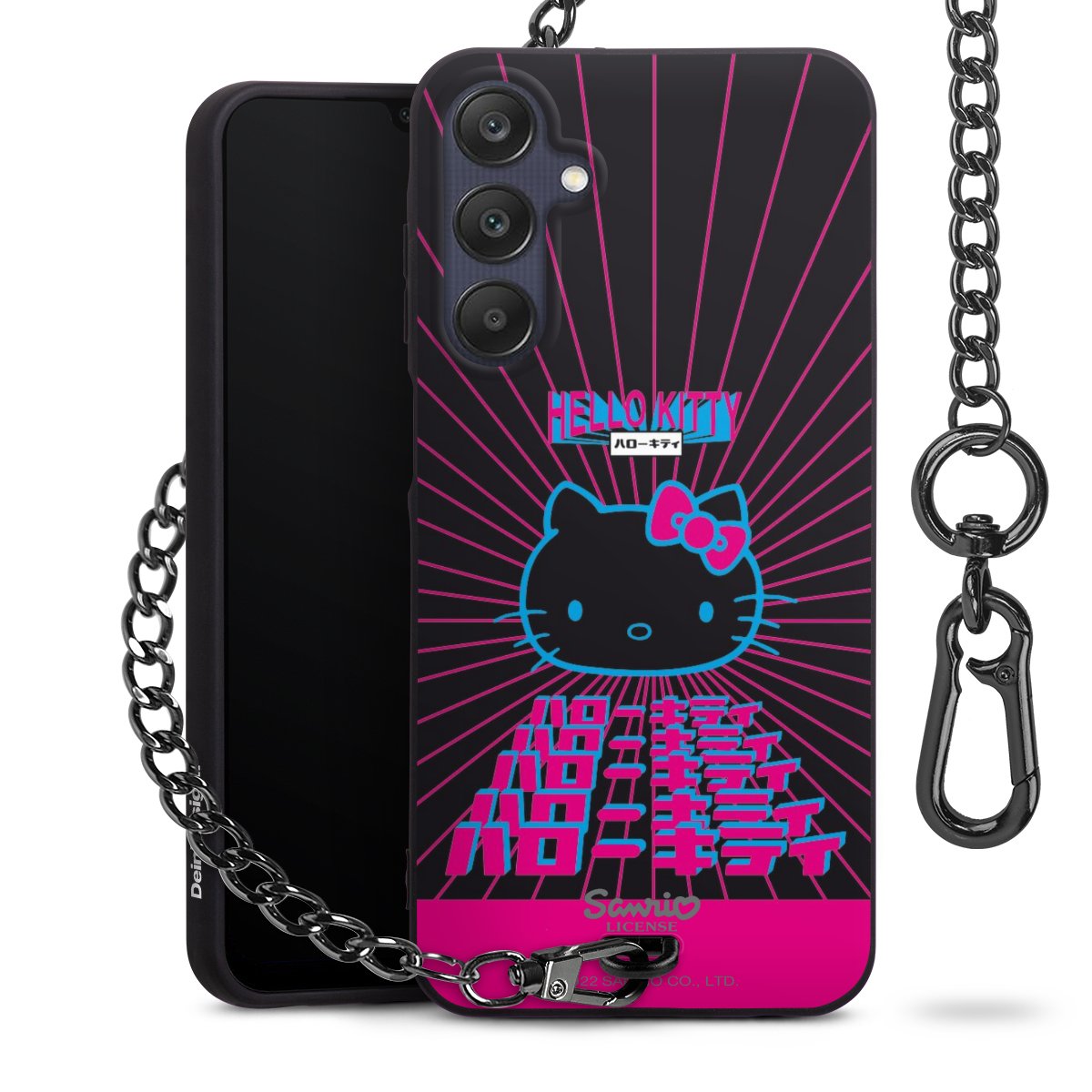 Die mattschwarze Silikon-Handyhülle besteht aus robustem TPU (thermoplastisches Polyurethan). Sie ist flexibel und schützt Dein Smartphone vor Stößen und Kratzern. Die Kette sowie der Karabinerhaken sind aus Metall in Gunmetal-Optik gefertigt. Für dieses Produkt kommen ausschließlich TÜV-geprüfte Materialien zum Einsatz.
