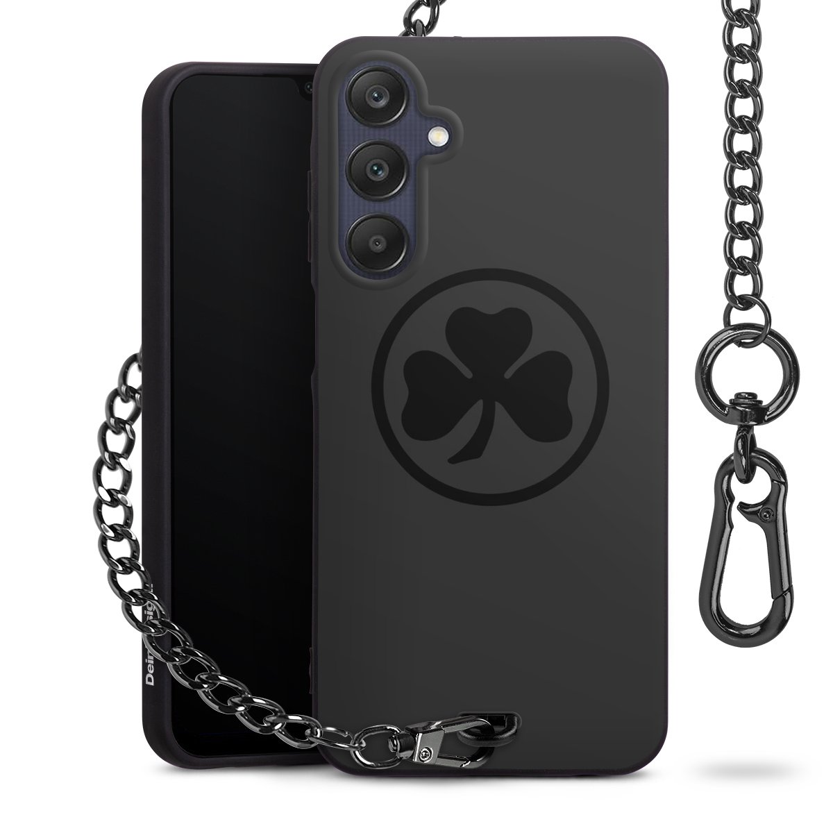 Die mattschwarze Silikon-Handyhülle besteht aus robustem TPU (thermoplastisches Polyurethan). Sie ist flexibel und schützt Dein Smartphone vor Stößen und Kratzern. Die Kette sowie der Karabinerhaken sind aus Metall in Gunmetal-Optik gefertigt. Für dieses Produkt kommen ausschließlich TÜV-geprüfte Materialien zum Einsatz.