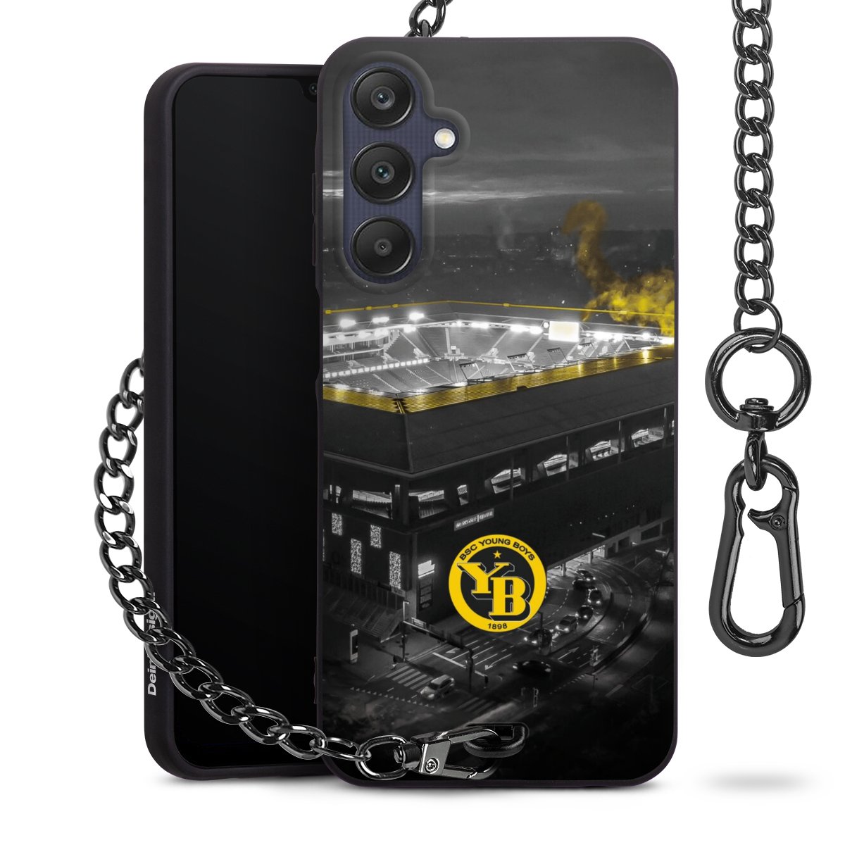 Die mattschwarze Silikon-Handyhülle besteht aus robustem TPU (thermoplastisches Polyurethan). Sie ist flexibel und schützt Dein Smartphone vor Stößen und Kratzern. Die Kette sowie der Karabinerhaken sind aus Metall in Gunmetal-Optik gefertigt. Für dieses Produkt kommen ausschließlich TÜV-geprüfte Materialien zum Einsatz.