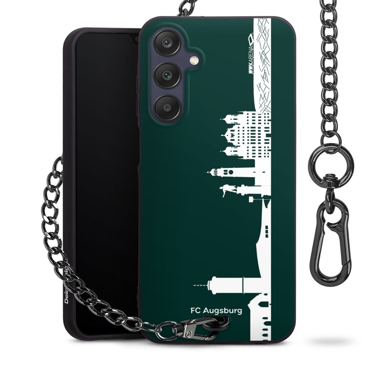 Die mattschwarze Silikon-Handyhülle besteht aus robustem TPU (thermoplastisches Polyurethan). Sie ist flexibel und schützt Dein Smartphone vor Stößen und Kratzern. Die Kette sowie der Karabinerhaken sind aus Metall in Gunmetal-Optik gefertigt. Für dieses Produkt kommen ausschließlich TÜV-geprüfte Materialien zum Einsatz.