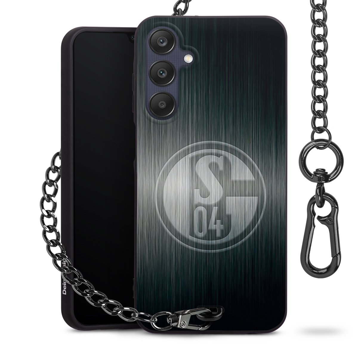 • Mattschwarze Handyhülle mit Metallkette