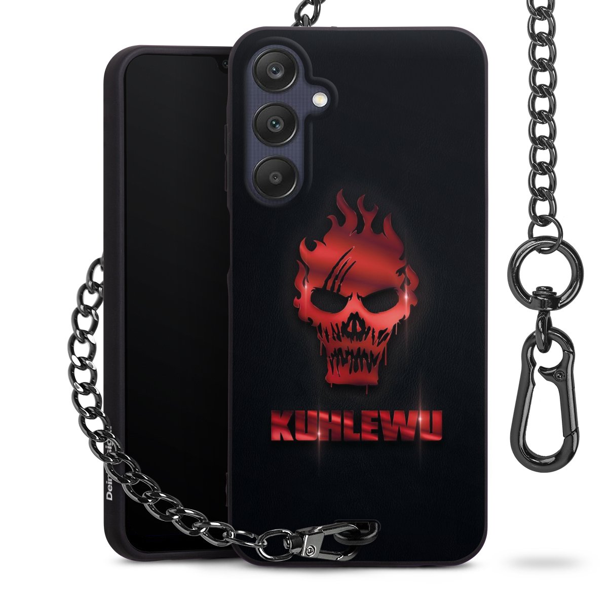 Die mattschwarze Silikon-Handyhülle besteht aus robustem TPU (thermoplastisches Polyurethan). Sie ist flexibel und schützt Dein Smartphone vor Stößen und Kratzern. Die Kette sowie der Karabinerhaken sind aus Metall in Gunmetal-Optik gefertigt. Für dieses Produkt kommen ausschließlich TÜV-geprüfte Materialien zum Einsatz.