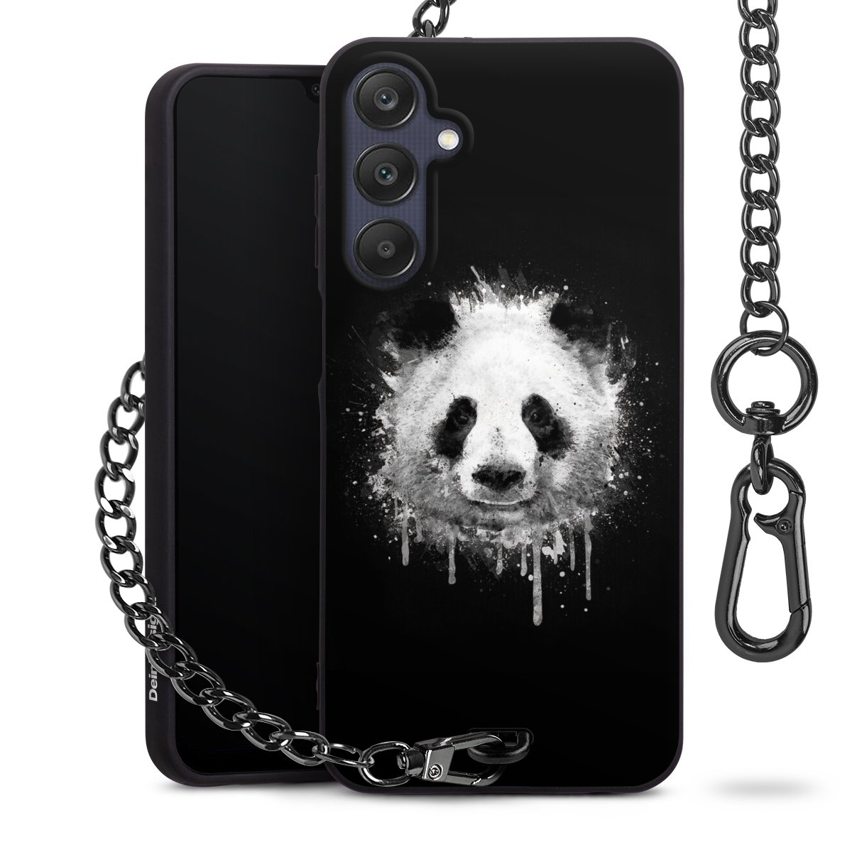 • Mattschwarze Handyhülle mit Metallkette