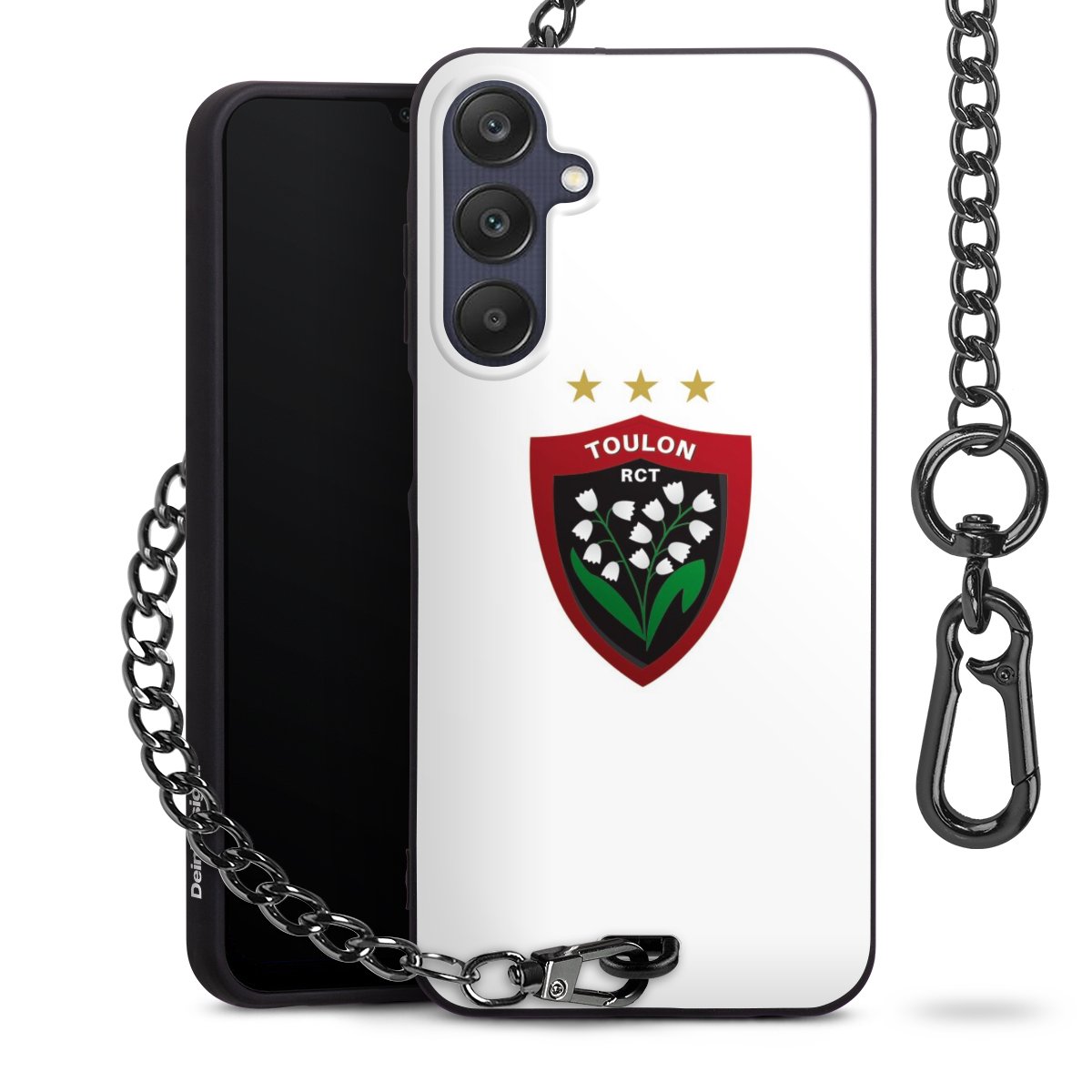 Die mattschwarze Silikon-Handyhülle besteht aus robustem TPU (thermoplastisches Polyurethan). Sie ist flexibel und schützt Dein Smartphone vor Stößen und Kratzern. Die Kette sowie der Karabinerhaken sind aus Metall in Gunmetal-Optik gefertigt. Für dieses Produkt kommen ausschließlich TÜV-geprüfte Materialien zum Einsatz.