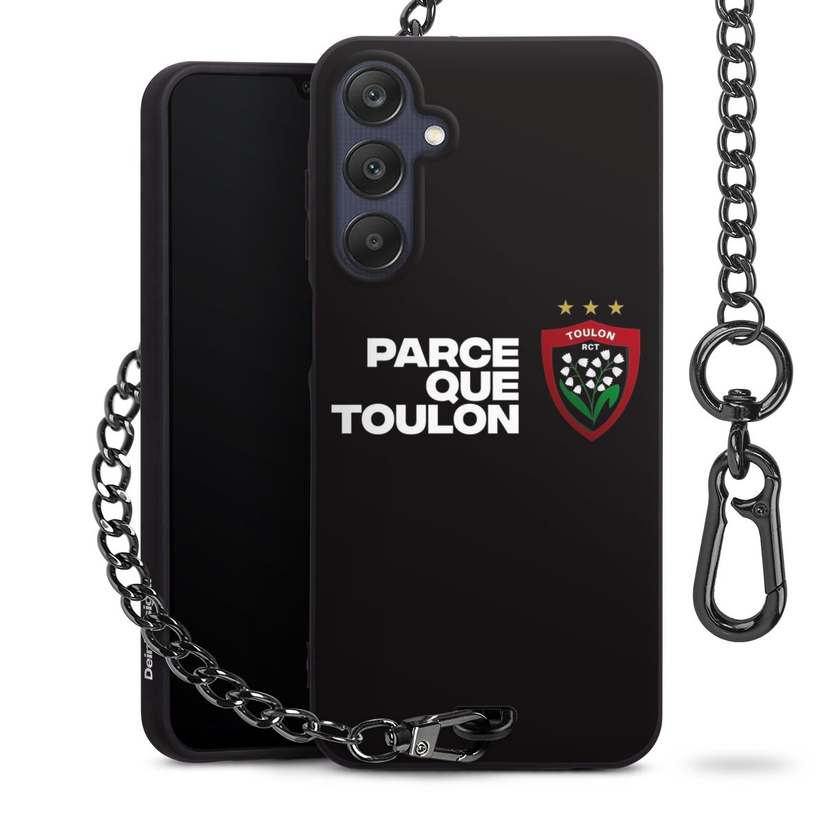 Die mattschwarze Silikon-Handyhülle besteht aus robustem TPU (thermoplastisches Polyurethan). Sie ist flexibel und schützt Dein Smartphone vor Stößen und Kratzern. Die Kette sowie der Karabinerhaken sind aus Metall in Gunmetal-Optik gefertigt. Für dieses Produkt kommen ausschließlich TÜV-geprüfte Materialien zum Einsatz.