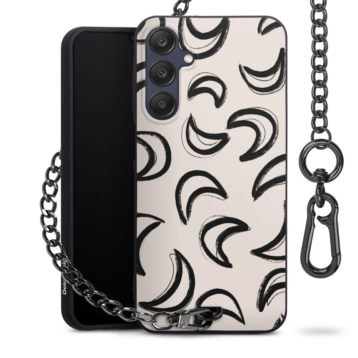 • Mattschwarze Handyhülle mit Metallkette