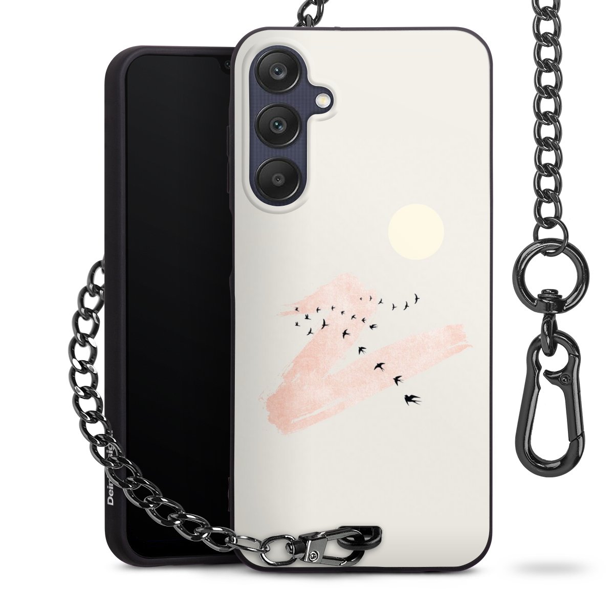 • Mattschwarze Handyhülle mit Metallkette