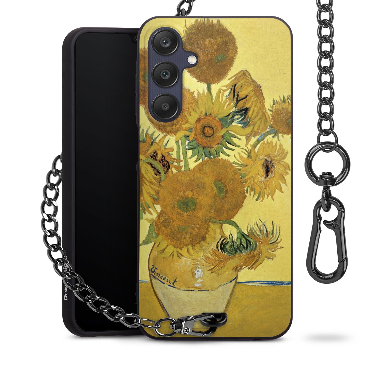 Die mattschwarze Silikon-Handyhülle besteht aus robustem TPU (thermoplastisches Polyurethan). Sie ist flexibel und schützt Dein Smartphone vor Stößen und Kratzern. Die Kette sowie der Karabinerhaken sind aus Metall in Gunmetal-Optik gefertigt. Für dieses Produkt kommen ausschließlich TÜV-geprüfte Materialien zum Einsatz.