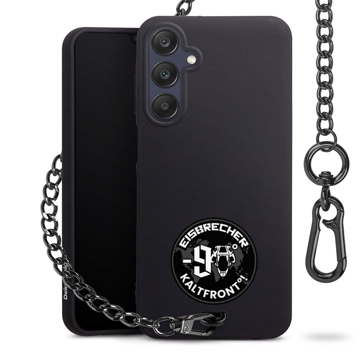 • Mattschwarze Handyhülle mit Metallkette