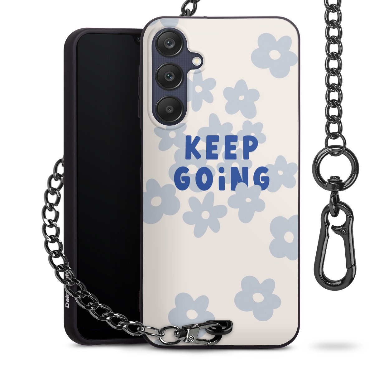 Die mattschwarze Silikon-Handyhülle besteht aus robustem TPU (thermoplastisches Polyurethan). Sie ist flexibel und schützt Dein Smartphone vor Stößen und Kratzern. Die Kette sowie der Karabinerhaken sind aus Metall in Gunmetal-Optik gefertigt. Für dieses Produkt kommen ausschließlich TÜV-geprüfte Materialien zum Einsatz.