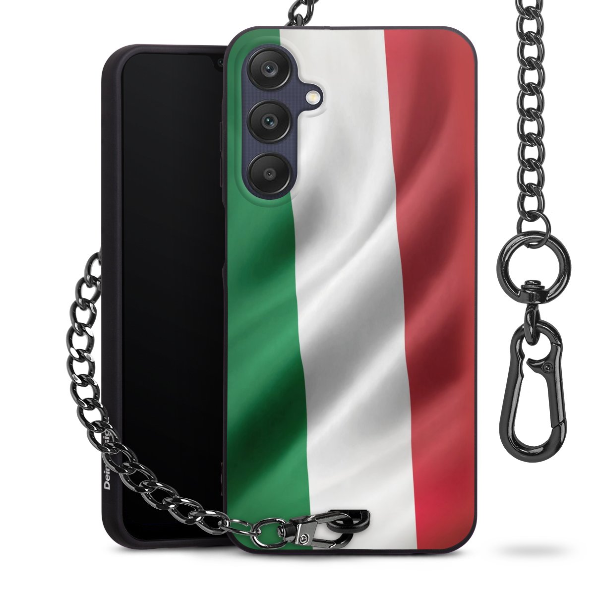 - Mattschwarze Handyhülle mit Metallkette