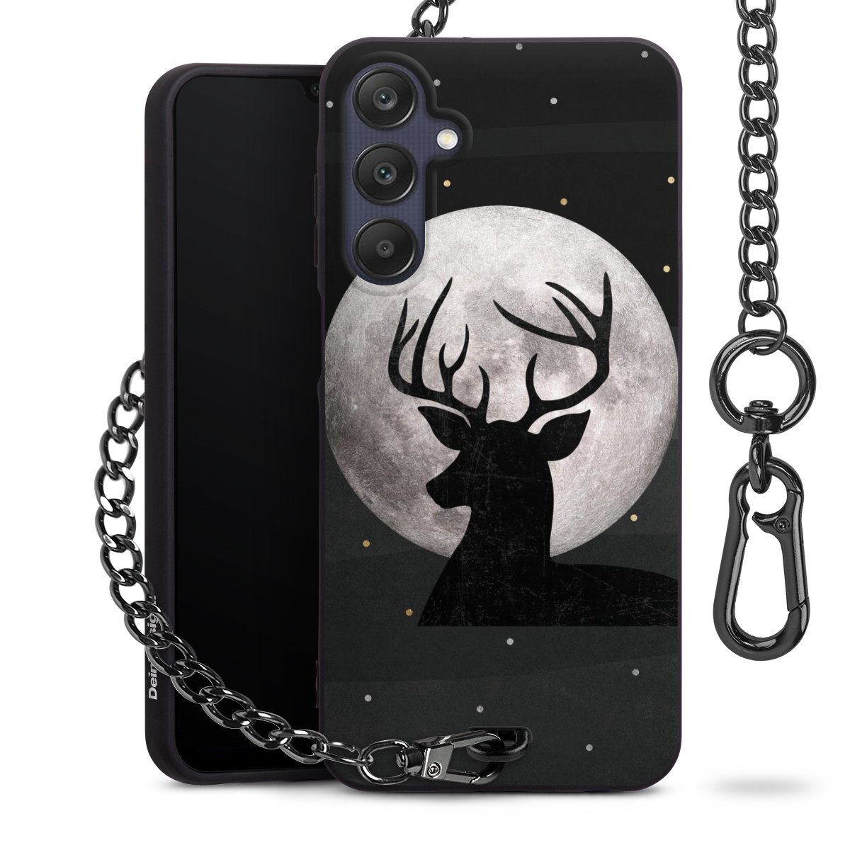 • Mattschwarze Handyhülle mit Metallkette