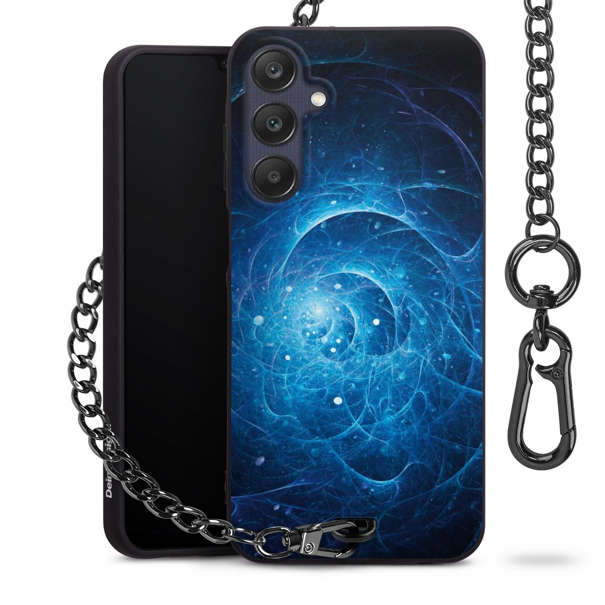 - Mattschwarze Handyhülle mit Metallkette