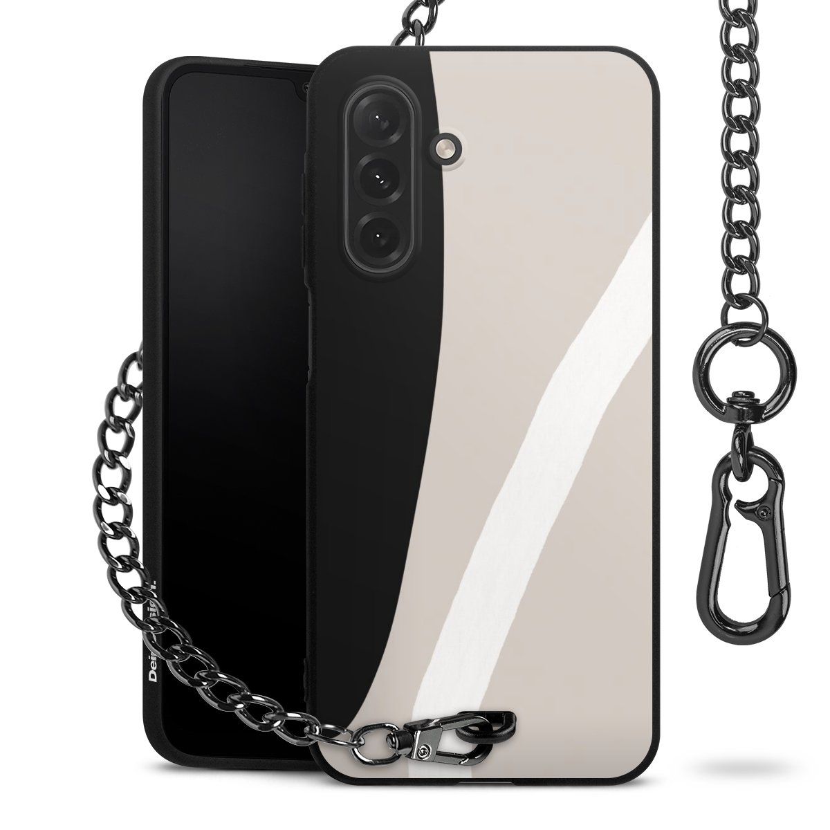 • Mattschwarze Handyhülle mit Metallkette