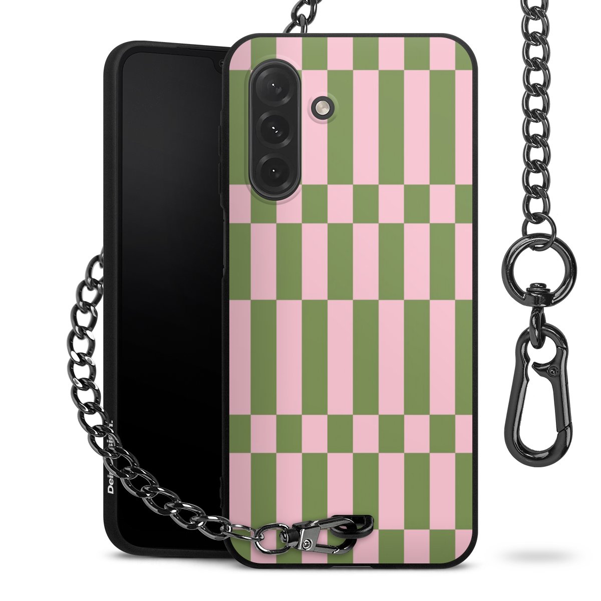 • Mattschwarze Handyhülle mit Metallkette