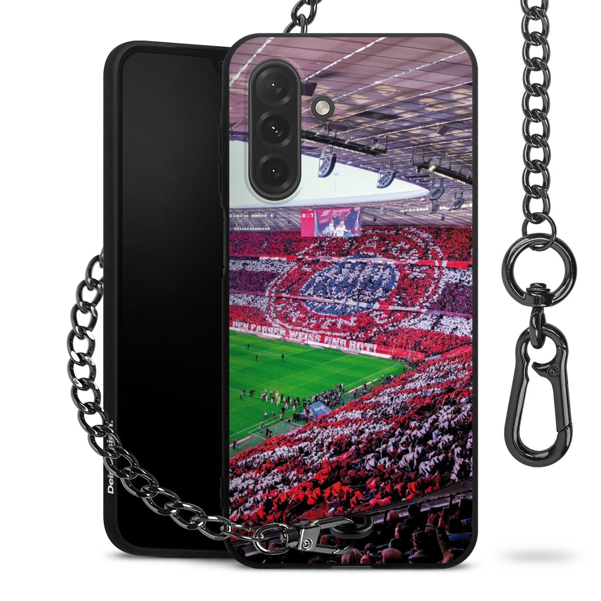 • Mattschwarze Handyhülle mit Metallkette
