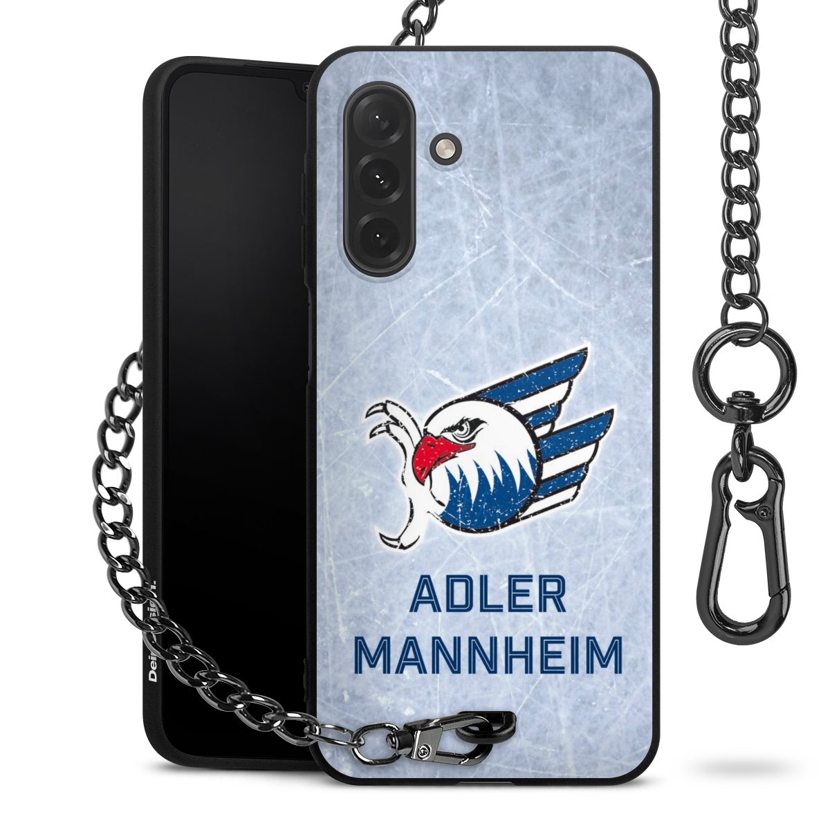 Die mattschwarze Silikon-Handyhülle besteht aus robustem TPU (thermoplastisches Polyurethan). Sie ist flexibel und schützt Dein Smartphone vor Stößen und Kratzern. Die Kette sowie der Karabinerhaken sind aus Metall in Gunmetal-Optik gefertigt. Für dieses Produkt kommen ausschließlich TÜV-geprüfte Materialien zum Einsatz.