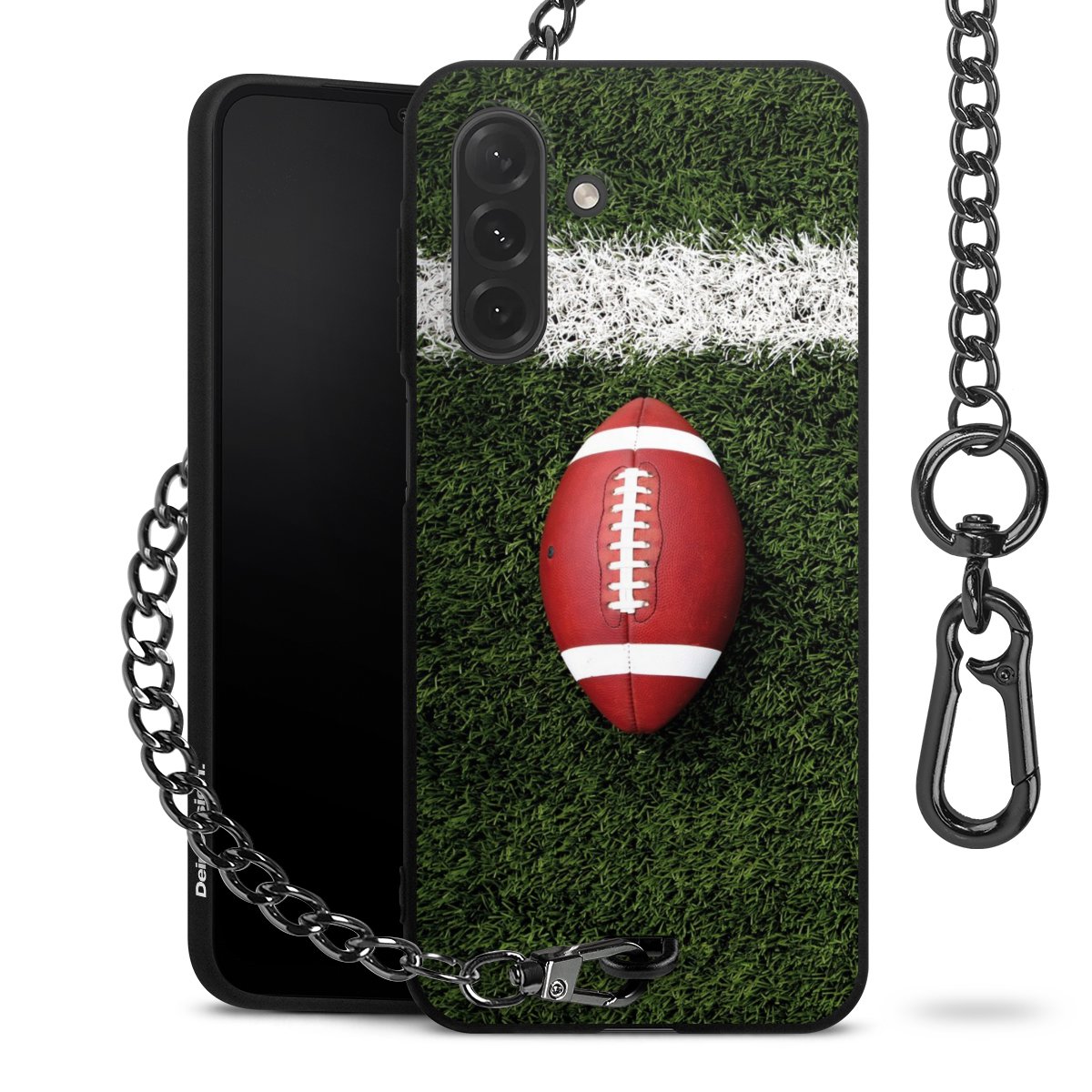 - Mattschwarze Handyhülle mit Metallkette