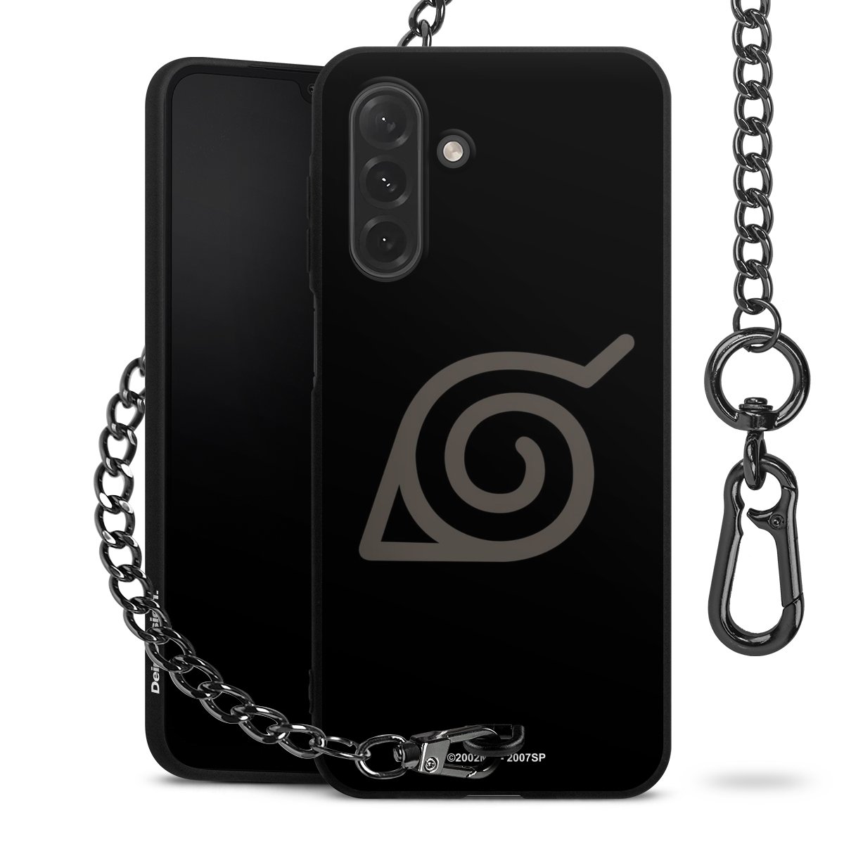 • Mattschwarze Handyhülle mit Metallkette