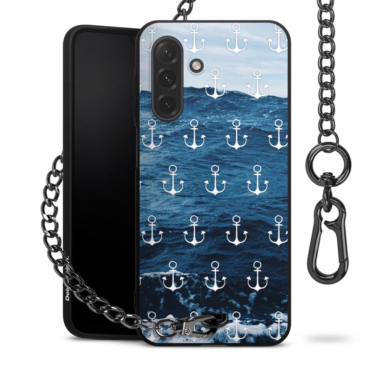 - Mattschwarze Handyhülle mit Metallkette