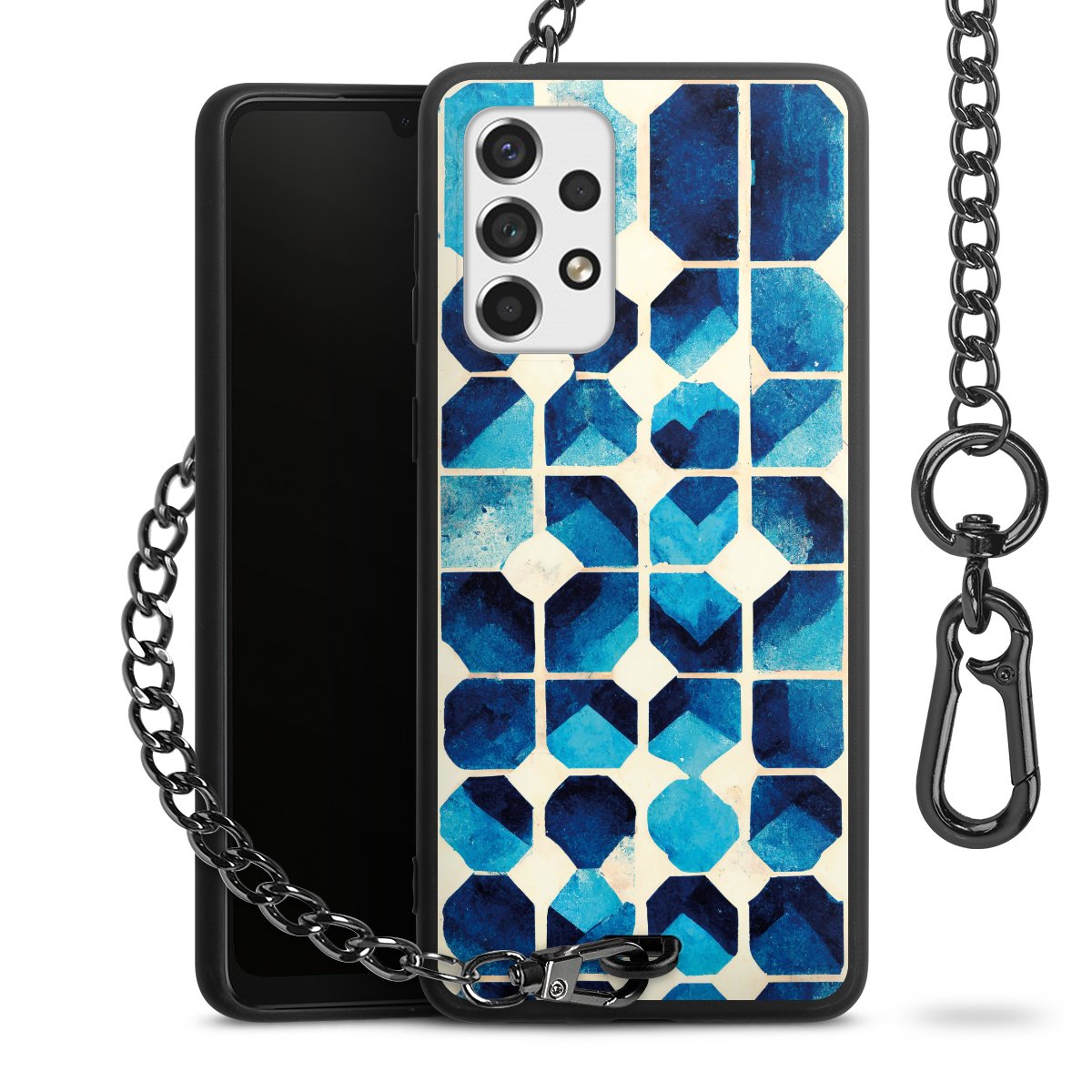 • Mattschwarze Handyhülle mit Metallkette