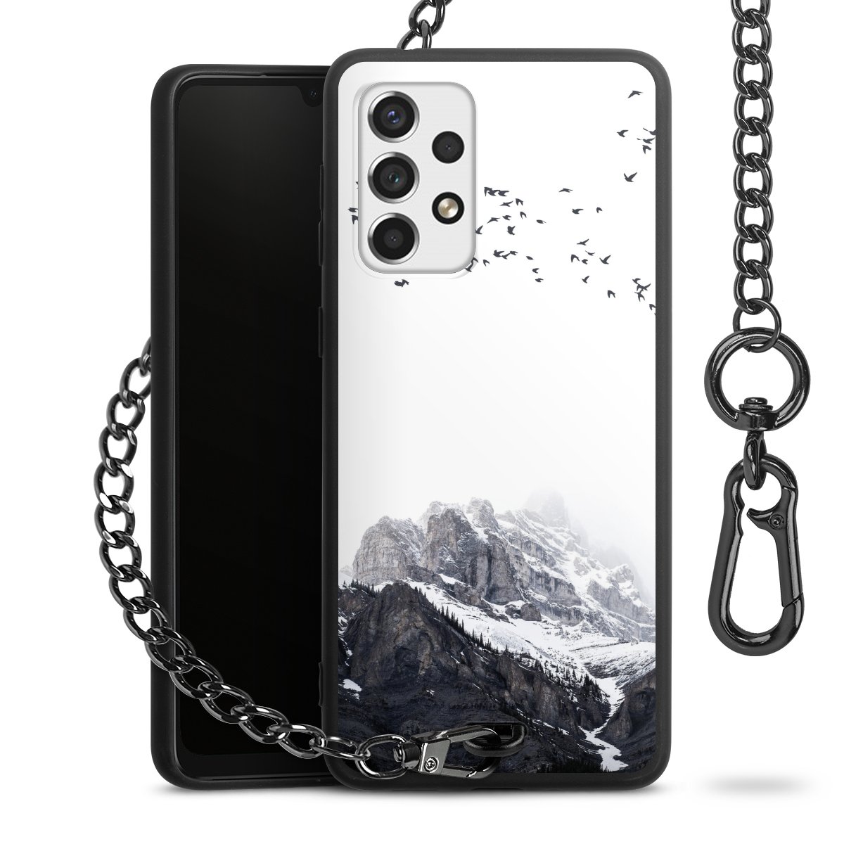 • Mattschwarze Handyhülle mit Metallkette