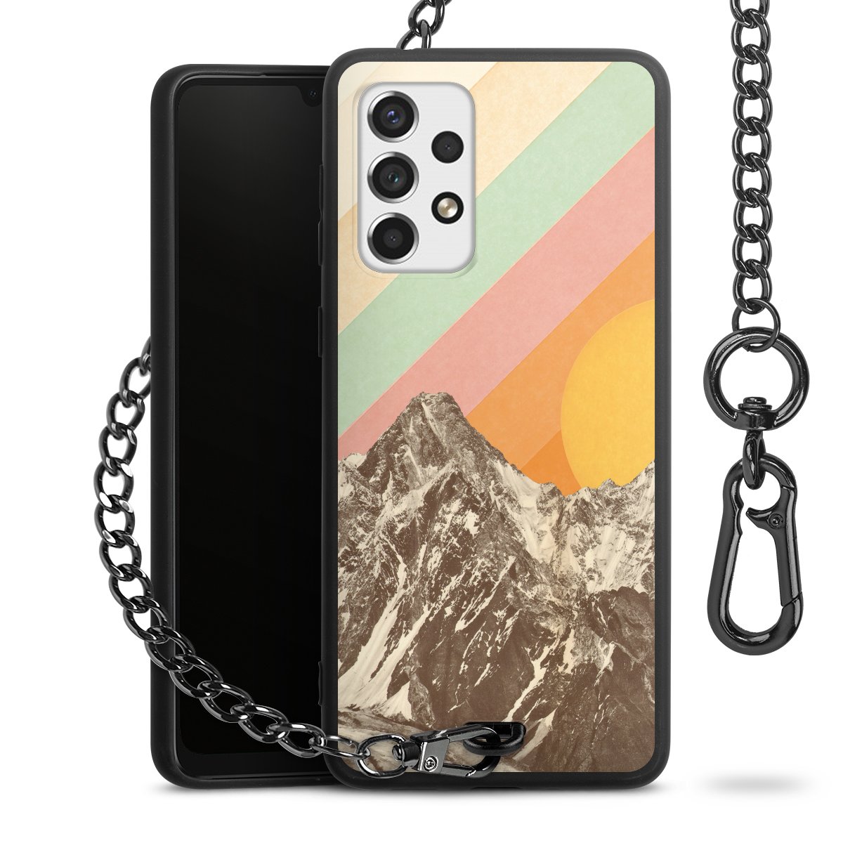 • Mattschwarze Handyhülle mit Metallkette