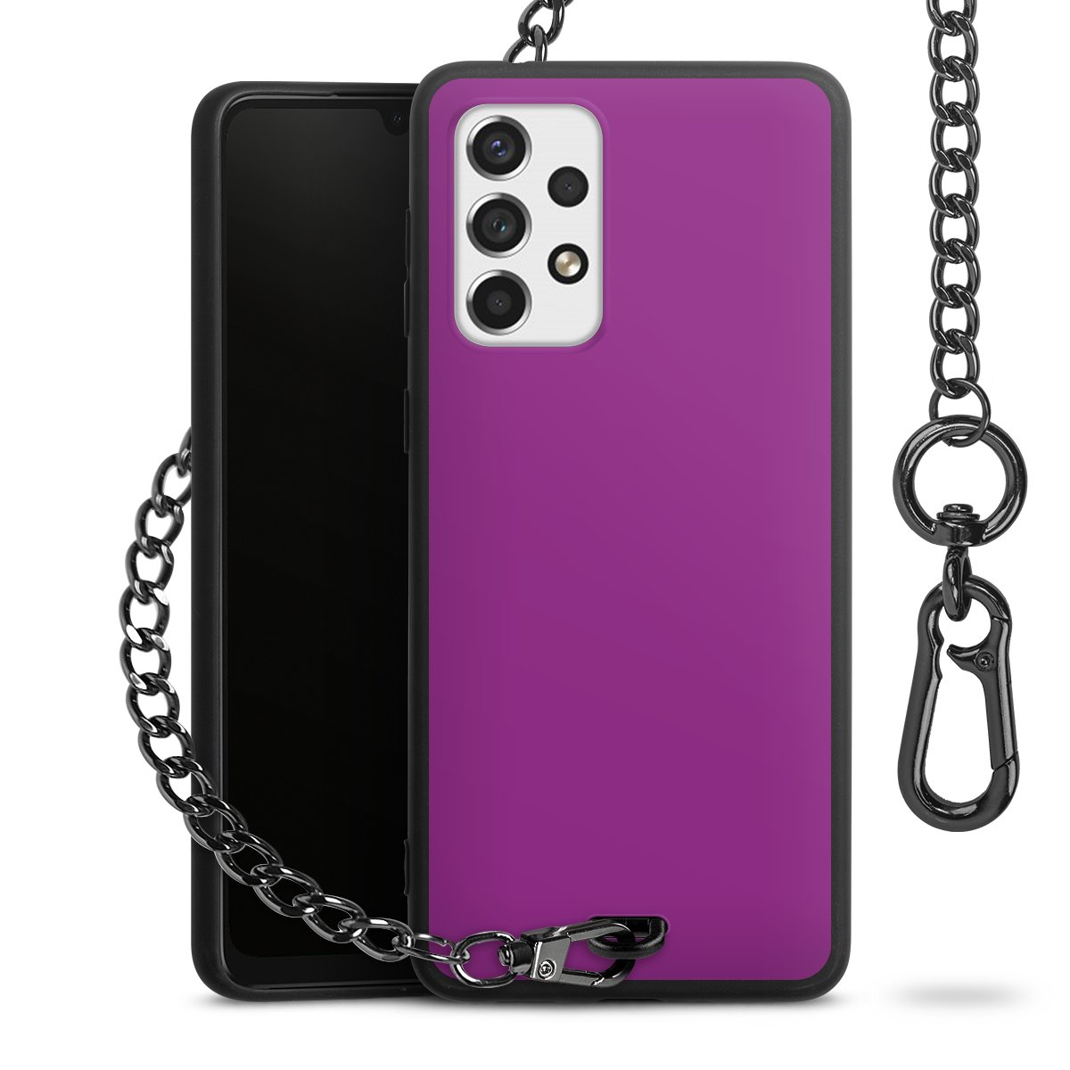 - Mattschwarze Handyhülle mit Metallkette