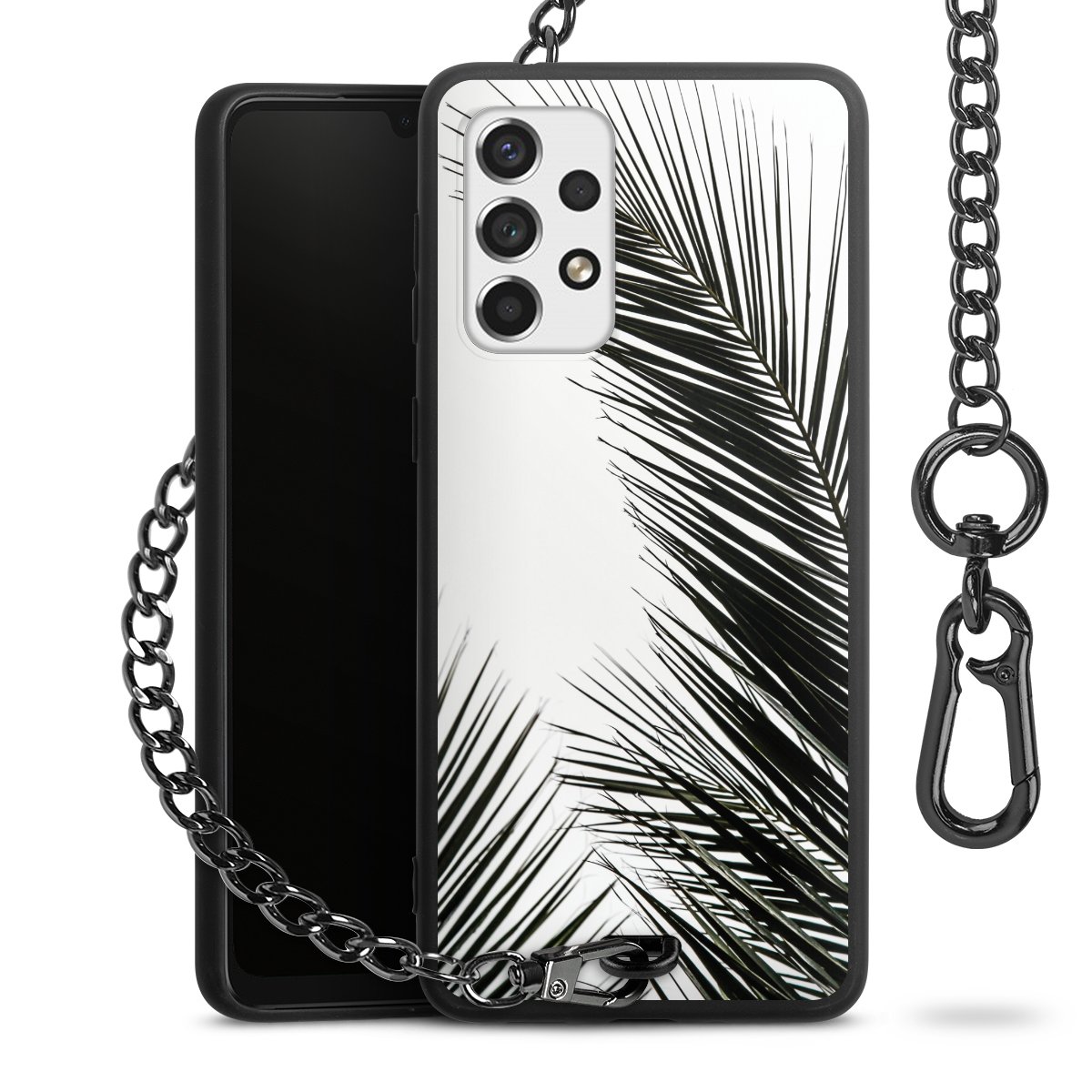 • Mattschwarze Handyhülle mit Metallkette