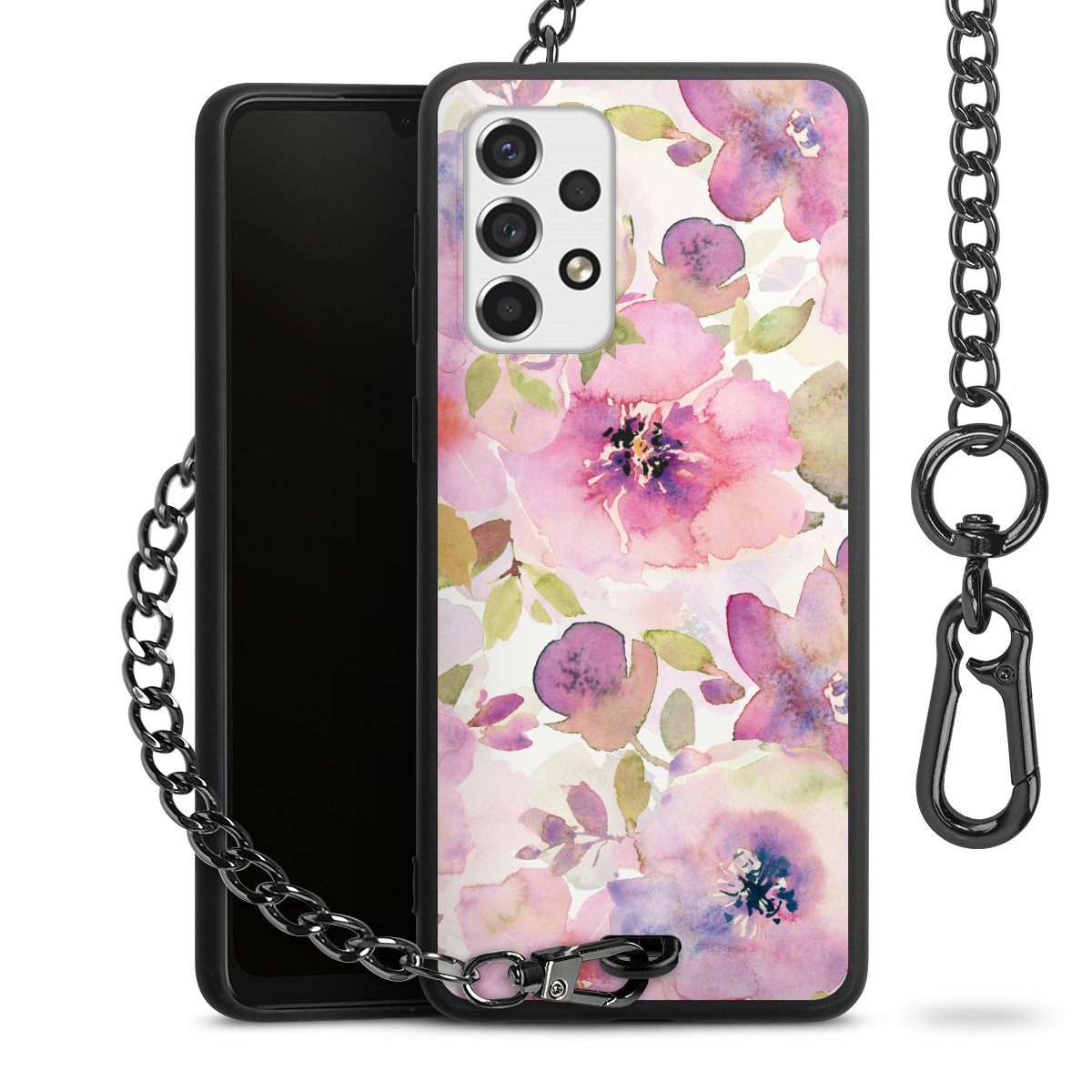 • Mattschwarze Handyhülle mit Metallkette