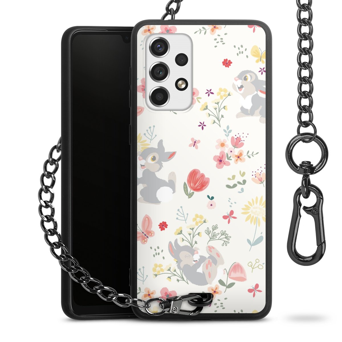 Die Handyhülle verfügt über eine mittig am unteren Rand platzierte Öse, an der die Metallkette stabil befestigt ist. Bestelle die Hülle einfach für Dein Smartphone-Modell, dann passt sie wie angegossen und Du brauchst sie bloß einmal anzudrücken. Handy in die Tasche, Karabiner an den Hosenbund – schon kann die Party starten.