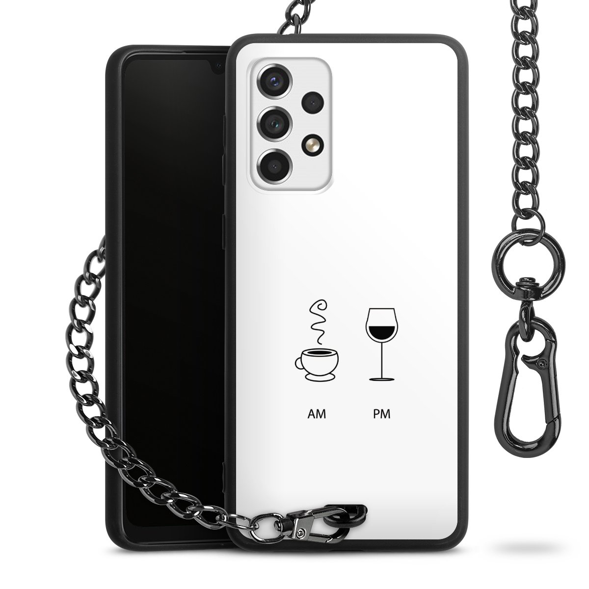 - Mattschwarze Handyhülle mit Metallkette