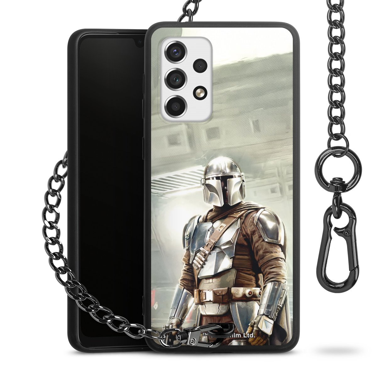- Mattschwarze Handyhülle mit Metallkette