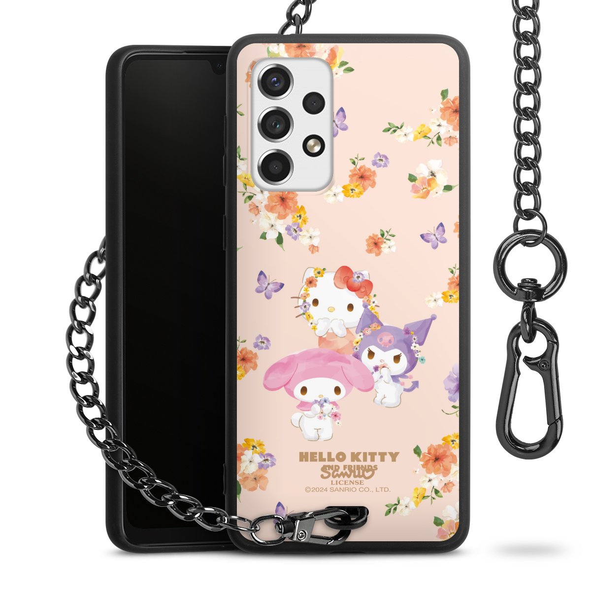 • Mattschwarze Handyhülle mit Metallkette