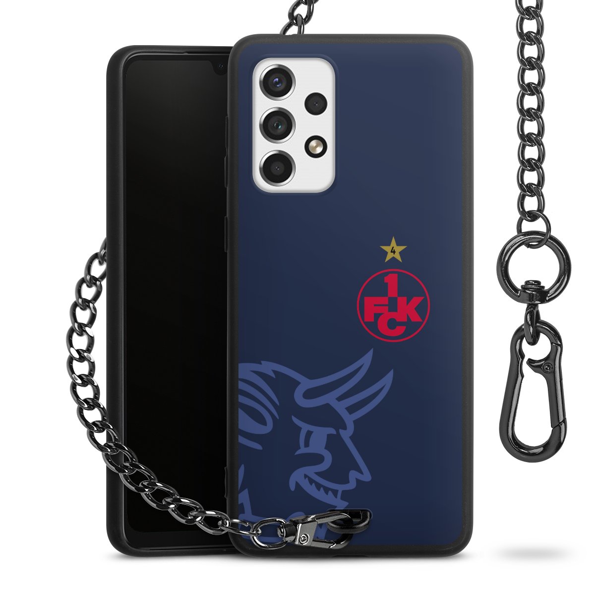 Die Handyhülle verfügt über eine mittig am unteren Rand platzierte Öse, an der die Metallkette stabil befestigt ist. Bestelle die Hülle einfach für Dein Smartphone-Modell, dann passt sie wie angegossen und Du brauchst sie bloß einmal anzudrücken. Handy in die Tasche, Karabiner an den Hosenbund – schon kann die Party starten.
