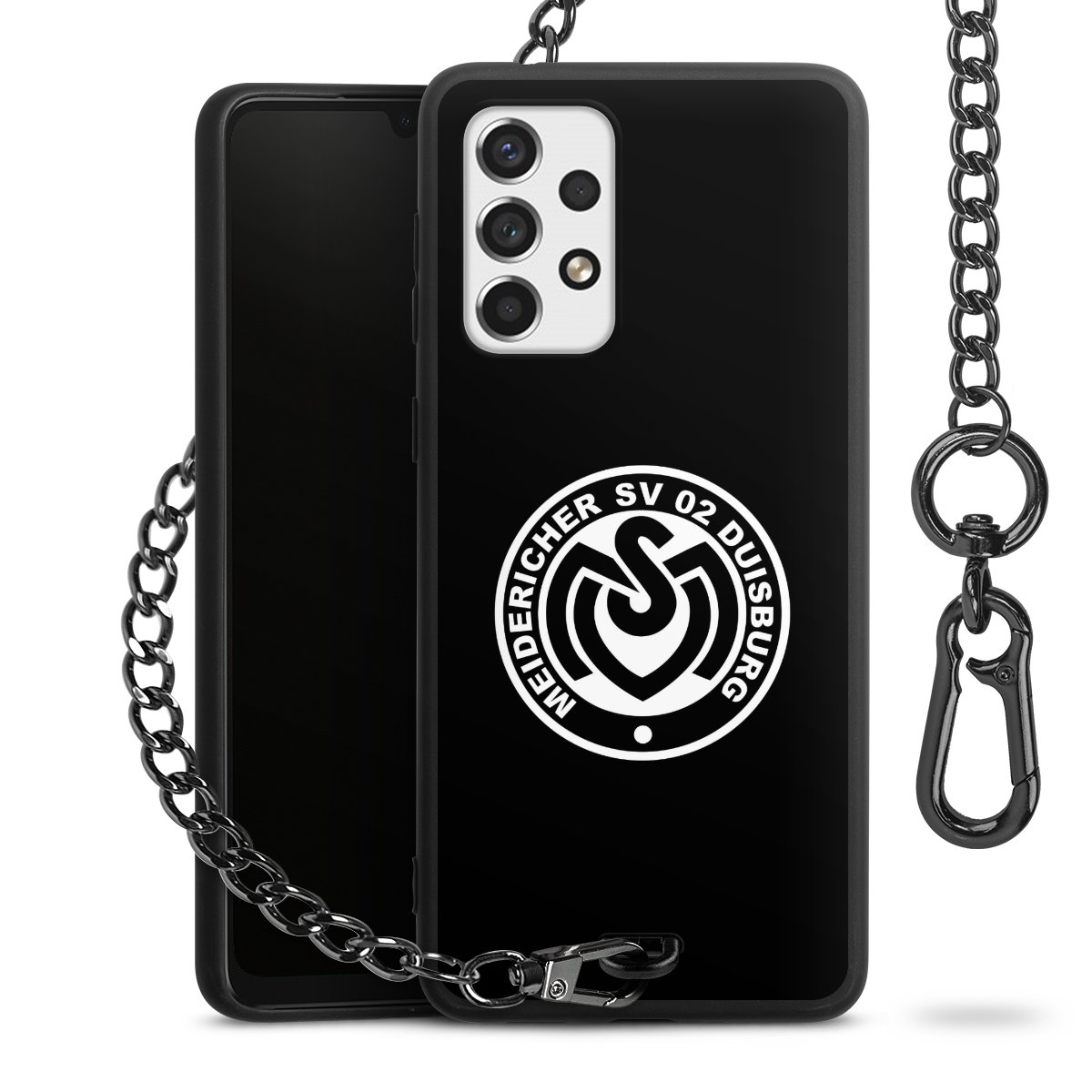 • Mattschwarze Handyhülle mit Metallkette