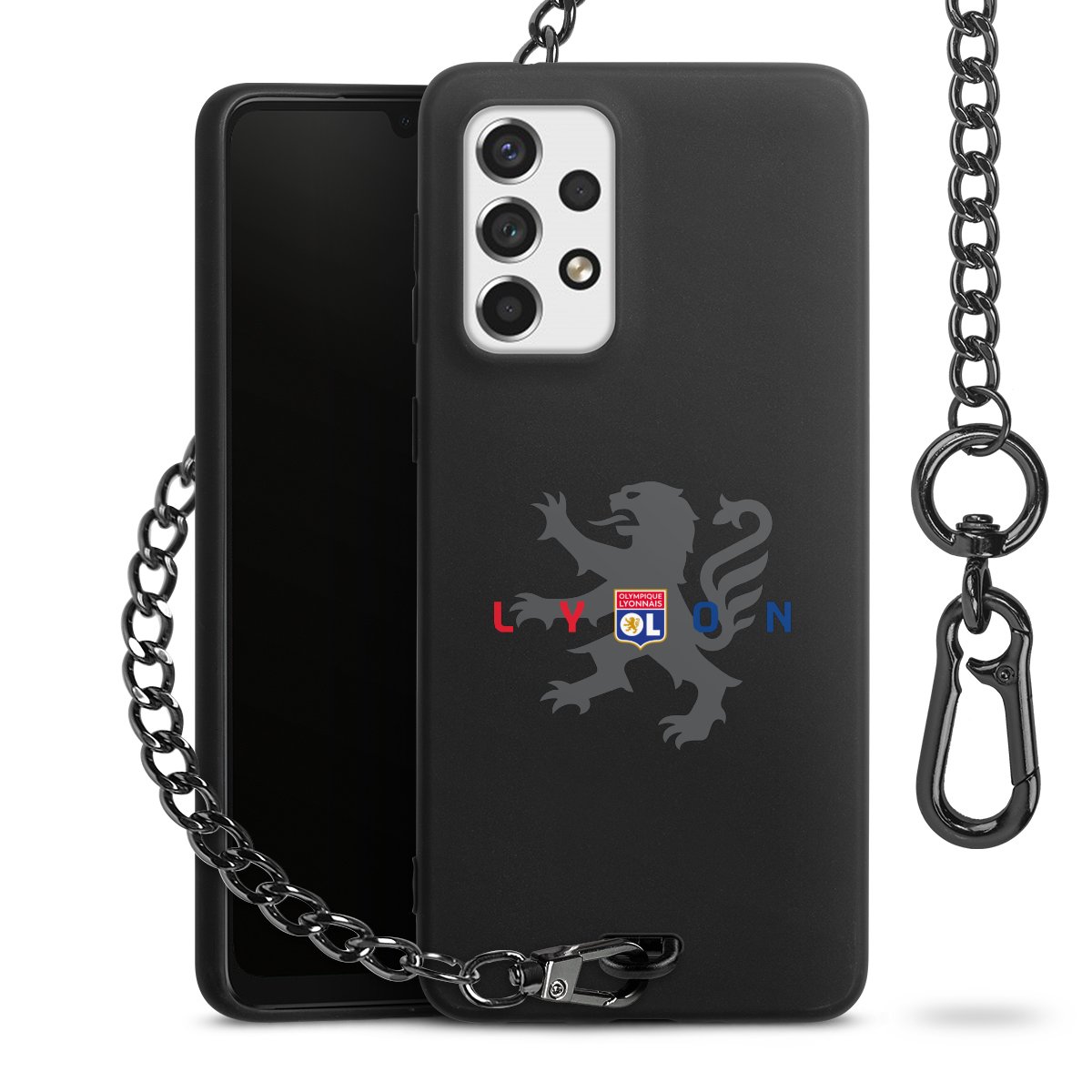 • Mattschwarze Handyhülle mit Metallkette