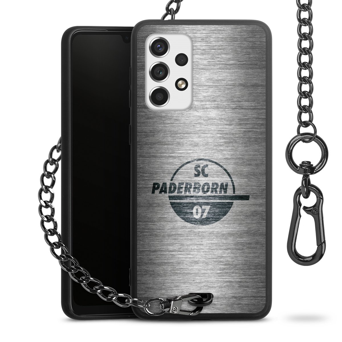 • Mattschwarze Handyhülle mit Metallkette