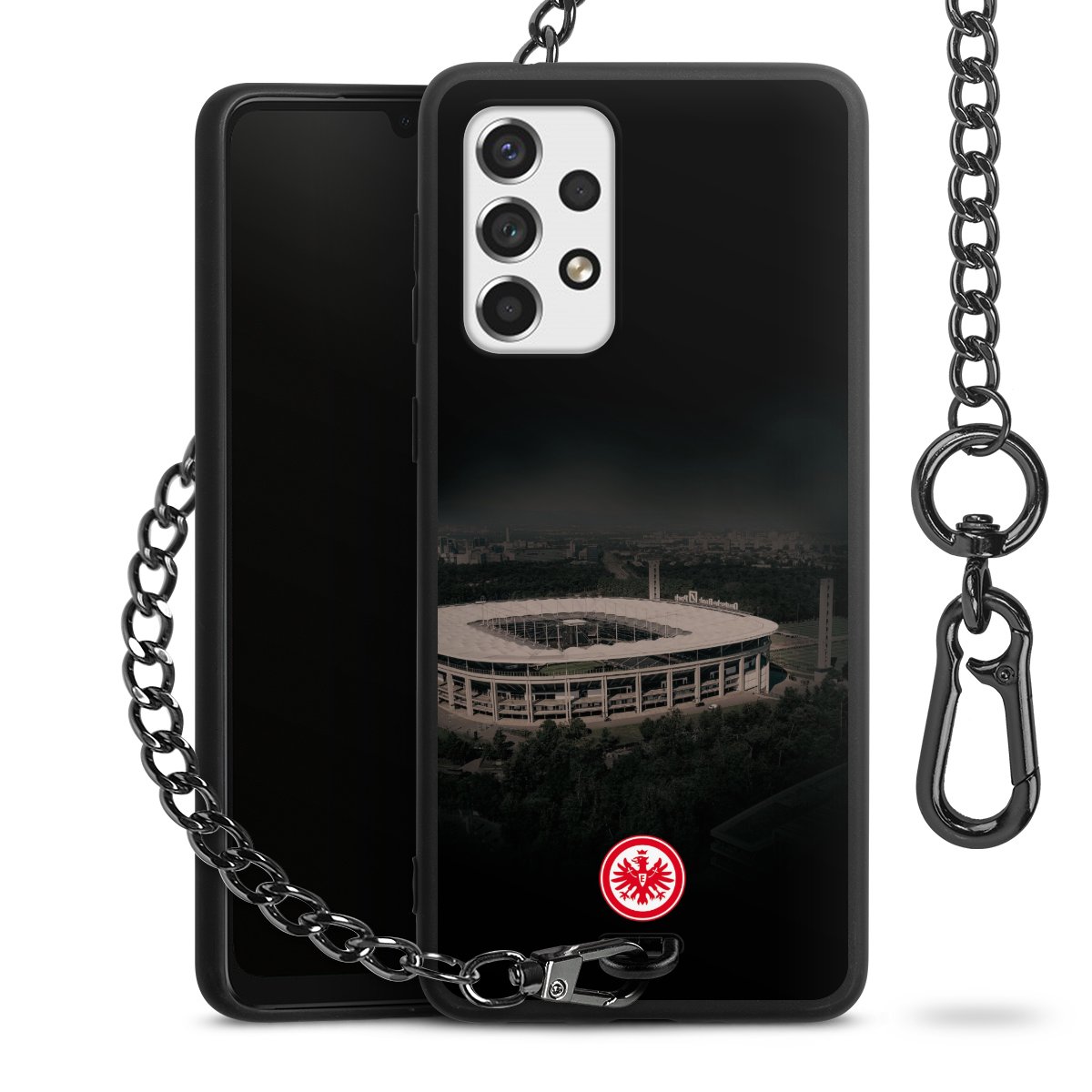 • Mattschwarze Handyhülle mit Metallkette