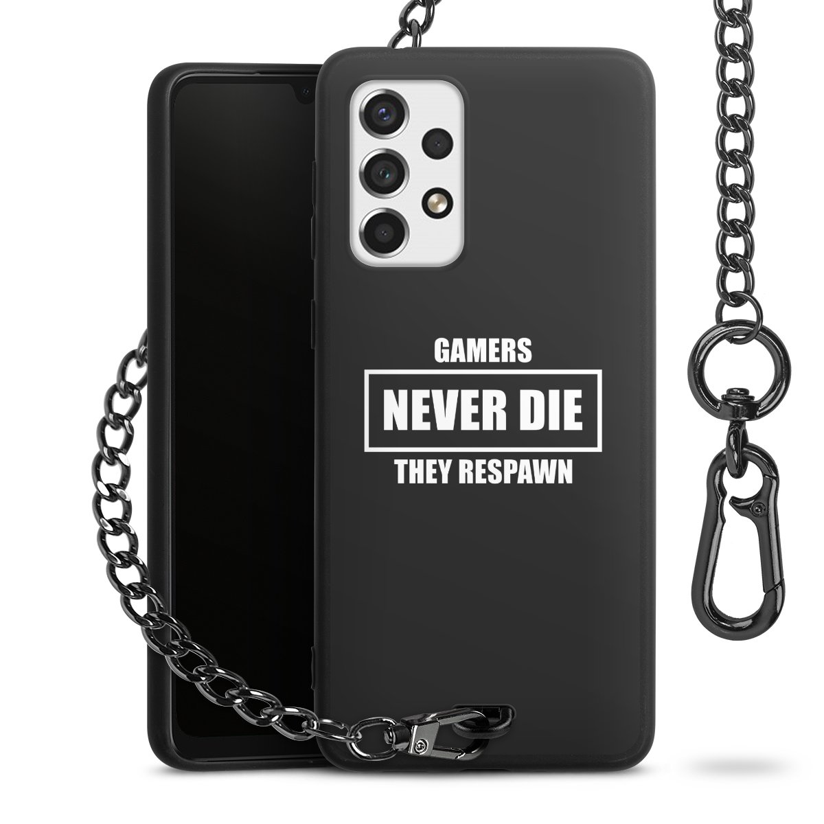 - Mattschwarze Handyhülle mit Metallkette