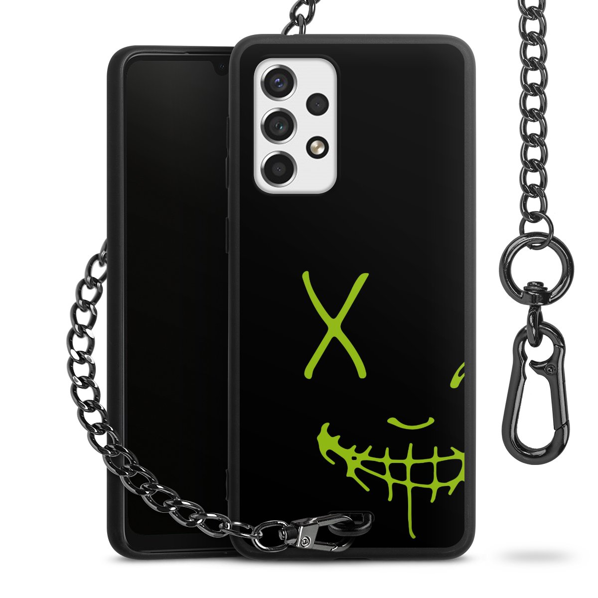 Die mattschwarze Silikon-Handyhülle besteht aus robustem TPU (thermoplastisches Polyurethan). Sie ist flexibel und schützt Dein Smartphone vor Stößen und Kratzern. Die Kette sowie der Karabinerhaken sind aus Metall in Gunmetal-Optik gefertigt. Für dieses Produkt kommen ausschließlich TÜV-geprüfte Materialien zum Einsatz.