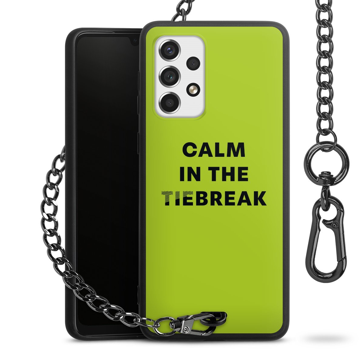 - Mattschwarze Handyhülle mit Metallkette