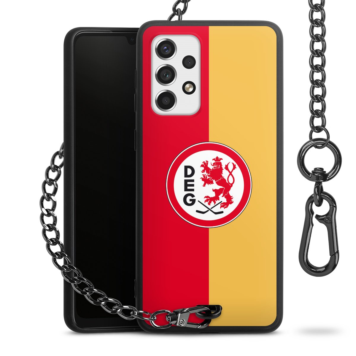 - Mattschwarze Handyhülle mit Metallkette