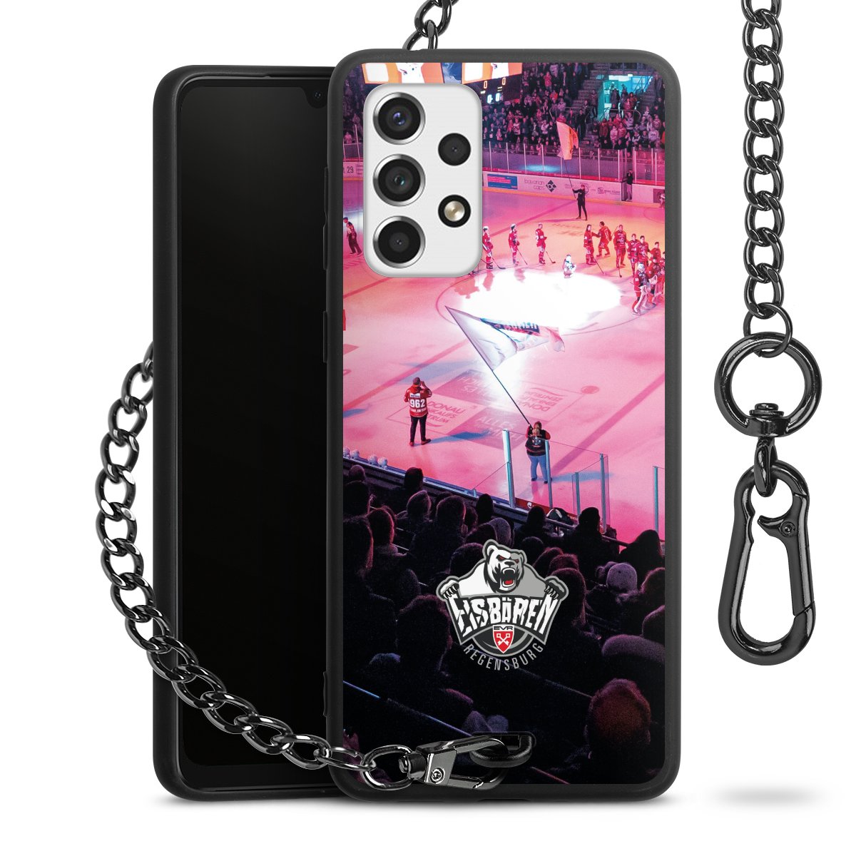 • Mattschwarze Handyhülle mit Metallkette